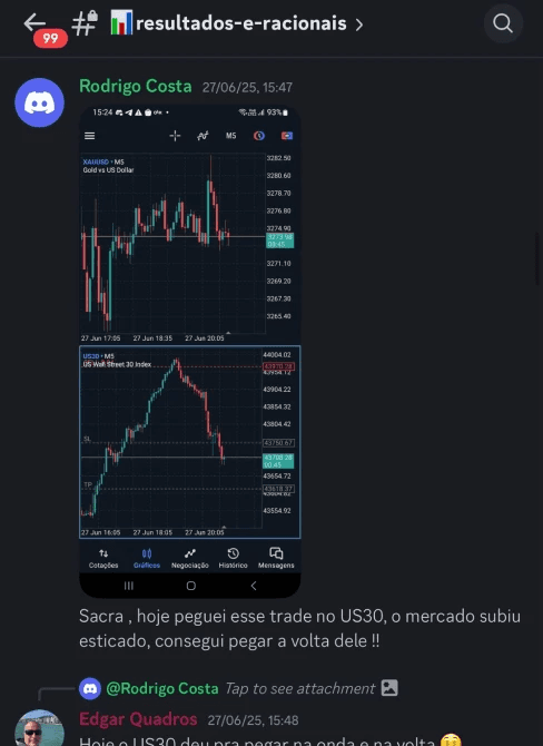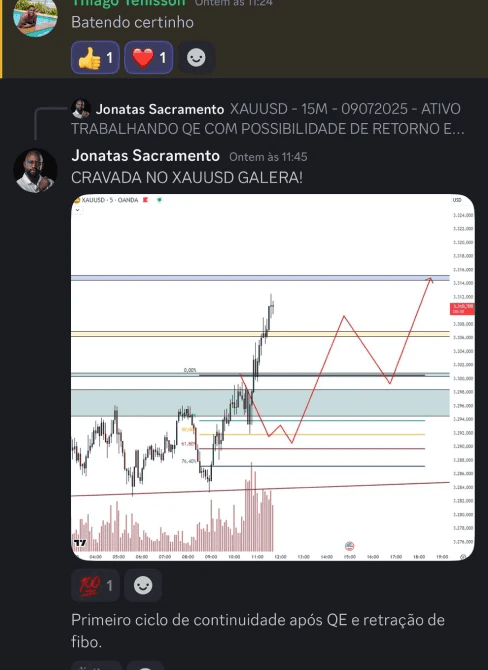 A Sala Educacional de Forex é um acompanhamento ao vivo pelo Zoom, onde você observa minha tela e acompanha minha leitura antes, durante e depois das operações. Cada passo é explicado em tempo real, de forma totalmente educacional. Você entende como um trader profissional constrói suas decisões com clareza e método. É um acompanhamento diário que treina visão, execução e postura operacional.